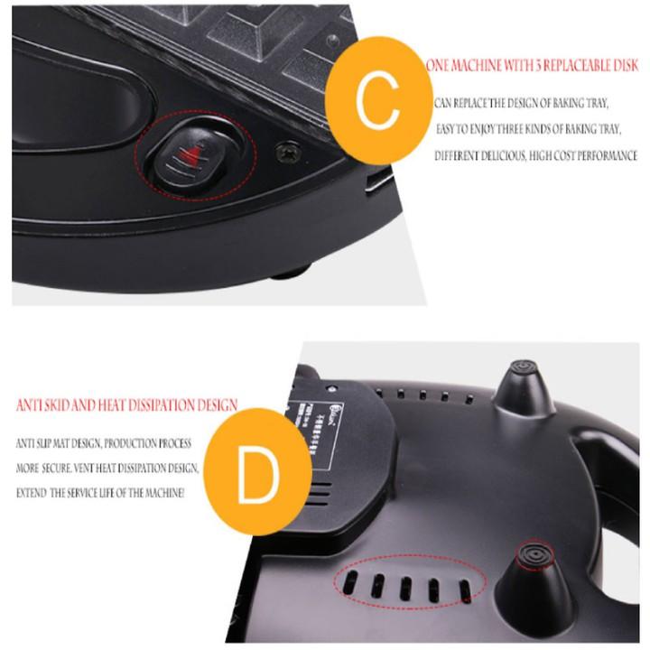 Máy nướng ép bánh SOKANY công suất lớn 750W tích hợp 2 mặt chống dính teflon giúp bánh chín nhanh chóng vô cùng tiện ích - HÀNG CHÍNH HÃNG CAM KẾT ĐỔI MỚI TẠI