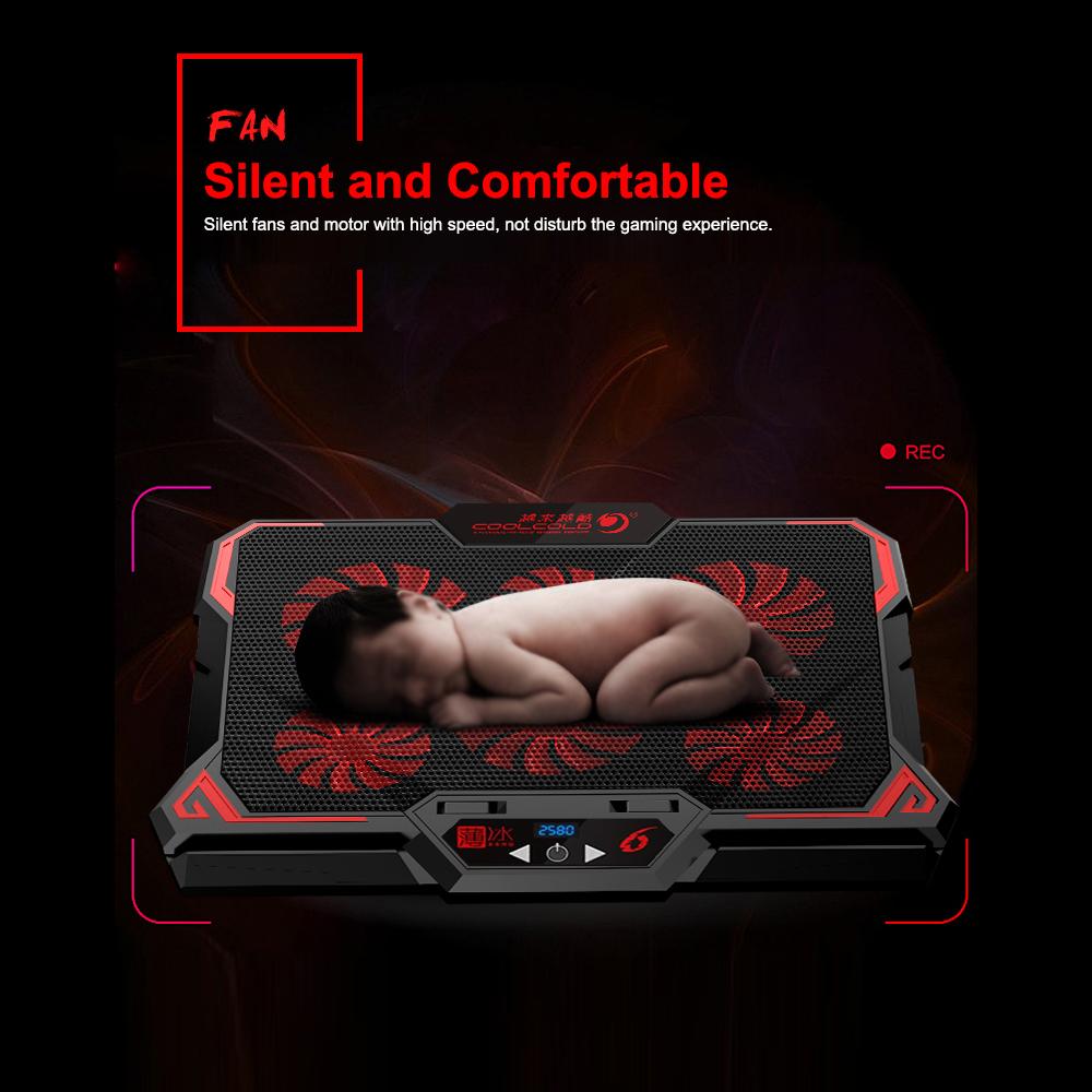 The cooling fan is specially designed for cooling your laptop and delivers the best cooling effect. Low-noise design offers you a very quiet working environment, which makes it a perfect gift for you and your friends. Features: Adjustable Wind Speed Features three level adjustable wind speed, and you can adjust it at your will. Six Fans 6 high-speed fans provide superior airflow cooling down the laptop, with the best cooling effect. Silent and Comfortable Silent fans and motor with high speed, not disturb the gaming experience. 28Ergonomic Comfort Angle Delivers protection to your cervial health. Wide Compatibility Suitable for 17inch laptops and below. Non-slip Performance Non-slip holder and mat, stable and reliable. Convenience Comes with mobile phone holder, for more convenience. Specification: Brand: Coolcold Model: K38 Size: 417 300 30mm / 16.4 11.8 1.18inch Fan Size: 100 100 20mm / 3.9 3.9 0.8inch (3pcs) Fan Size: 80 80 15mm / 3.1 3.1 0.6inch (2pcs) Fan Size: 70 70 15mm / 2.8 2.8 0.6inch(1pc) Fan Speed: 1400-260010%RPM Voltage: 5VDC Current; 0.910%A Max. Power: 4.5W Weight: 835g / 29.5oz Package Include: 1 * Cooling Fan