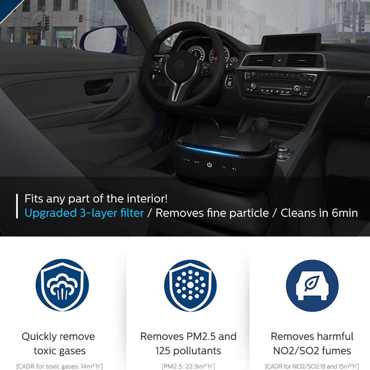 Máy khử mùi, lọc không khí trên xe ô tô cao cấp Philips GP9301 - Cảm biến chất lượng không khí 4 chiều - HÀNG NHẬP KHẨU Philips là tên gọi phổ biến