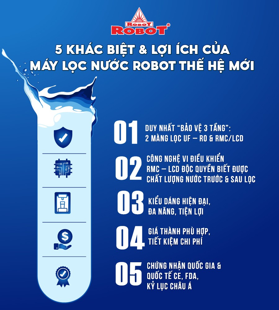 - Sử dụng Máy lọc nước ROBOT giúp TIẾT KIỆM rất lớn chi phí sử dụng bình nước 20 lít, cũng như không tốn điện & thời gian khi phải đun sôi nước để uống. Hiệu quả kinh tế tối đa, thời gian thu hồi vốn chỉ từ 6 tháng đến 1 năm.