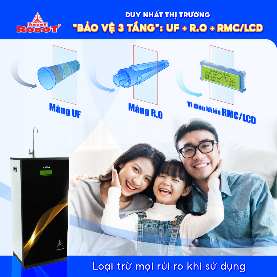 - Máy lọc nước “Bảo vệ 3 tầng” UF + RO - RMC/LCD duy nhất thị trường