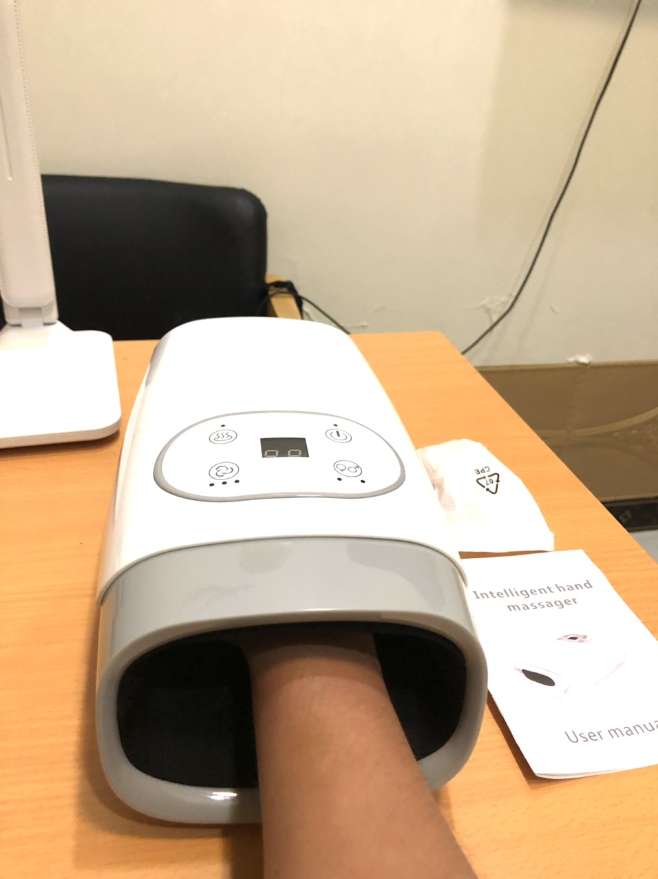 Máy massage bàn tay và cổ tay thúc đẩy quá trình tuần hoàn máu đến bàn tay, ngăn ngừa đau nhức tay ;tê bì, lạnh tay. Máy sử dụng pin sạc, 3 chế độ massage,