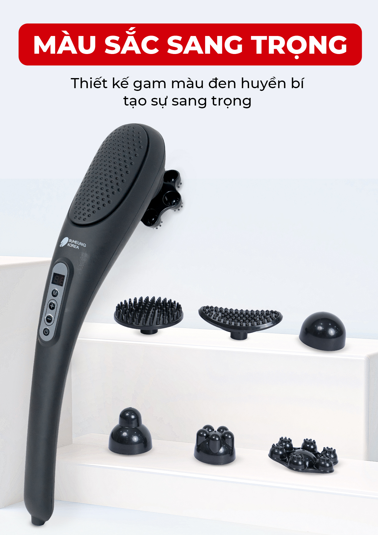 Máy massage cầm tay Buheung MK-229, thiết kế công thái học, 4 đầu massage, BH chính hãng 12 tháng  Máy Soi Da Chuyên Sâu Wood light KN9000B
