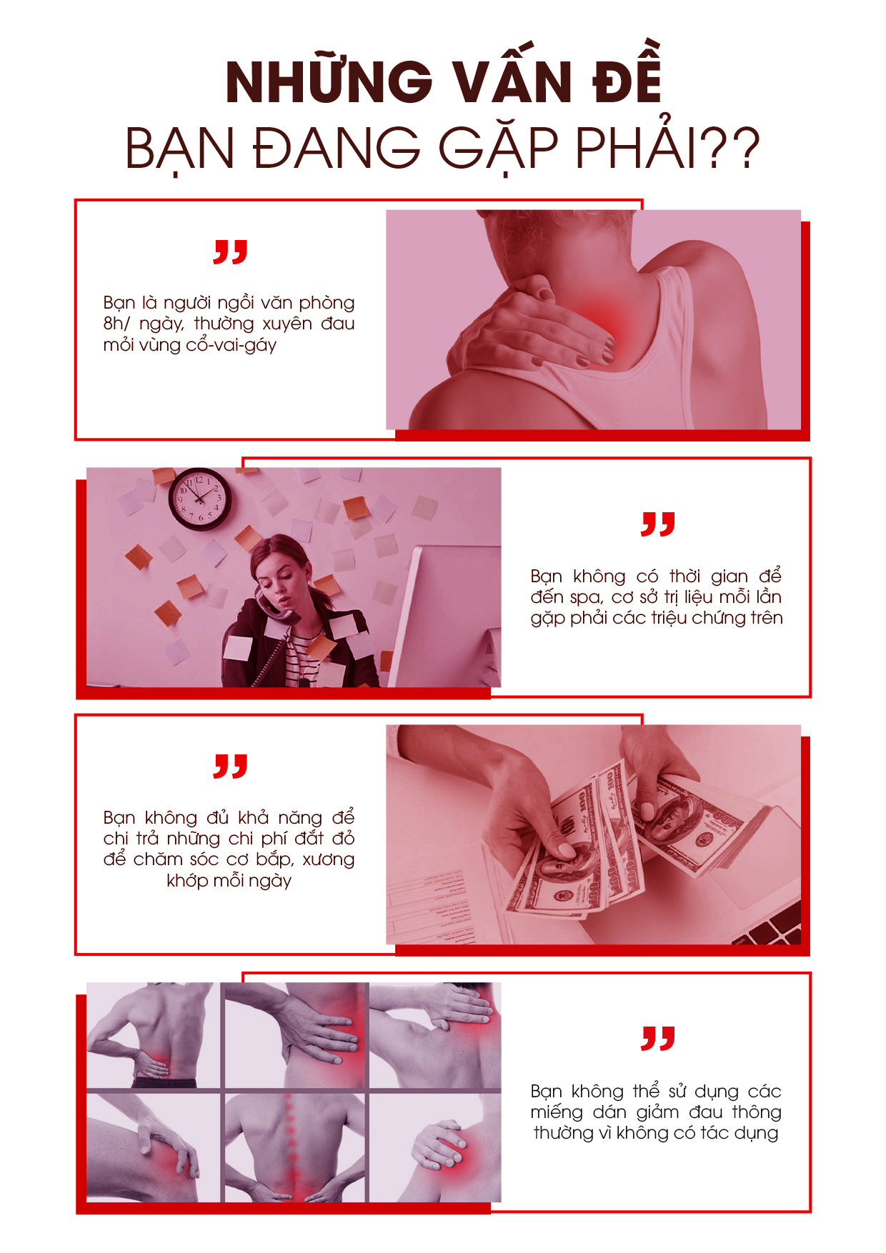 Công việc áp lực làm cho bạn luôn ở trạng thái mệt mỏi, căng thẳng. Hơn nữa dân văn phòng thường ít vận động, ngồi lâu làm đau nhức mỏi các khớp. Máy Massage cầm