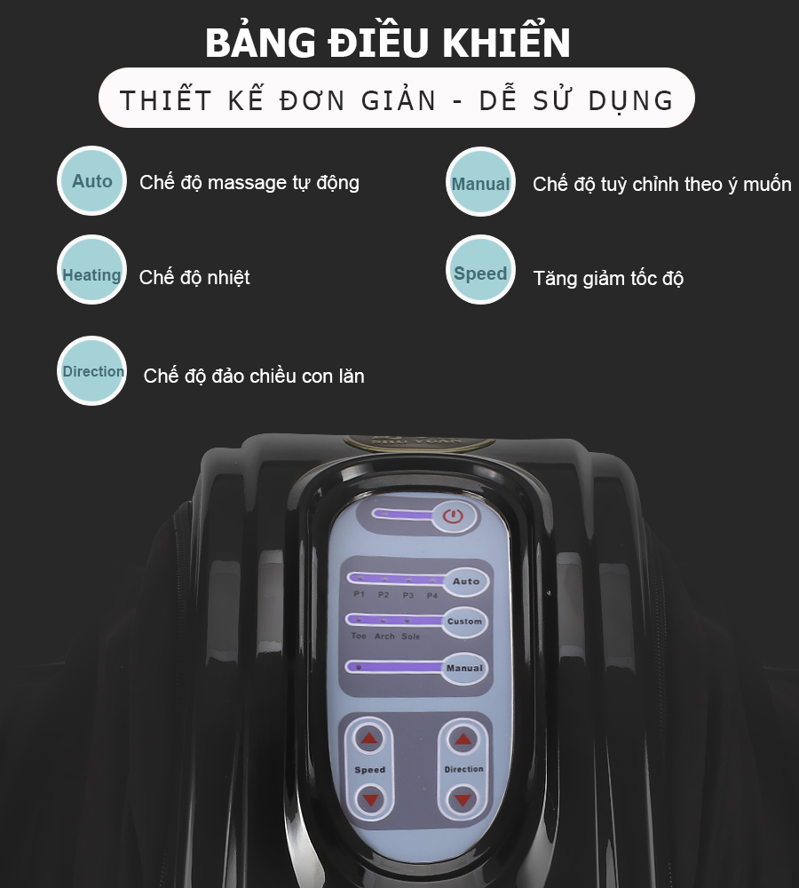 Được thiết lập sẵn các chương trình- chế độ- thời gian – cường độ ở những kiểu mát xa khác nhau , xoa đúng huyệt, giảm đau nhức, thư giản hiệu quả.