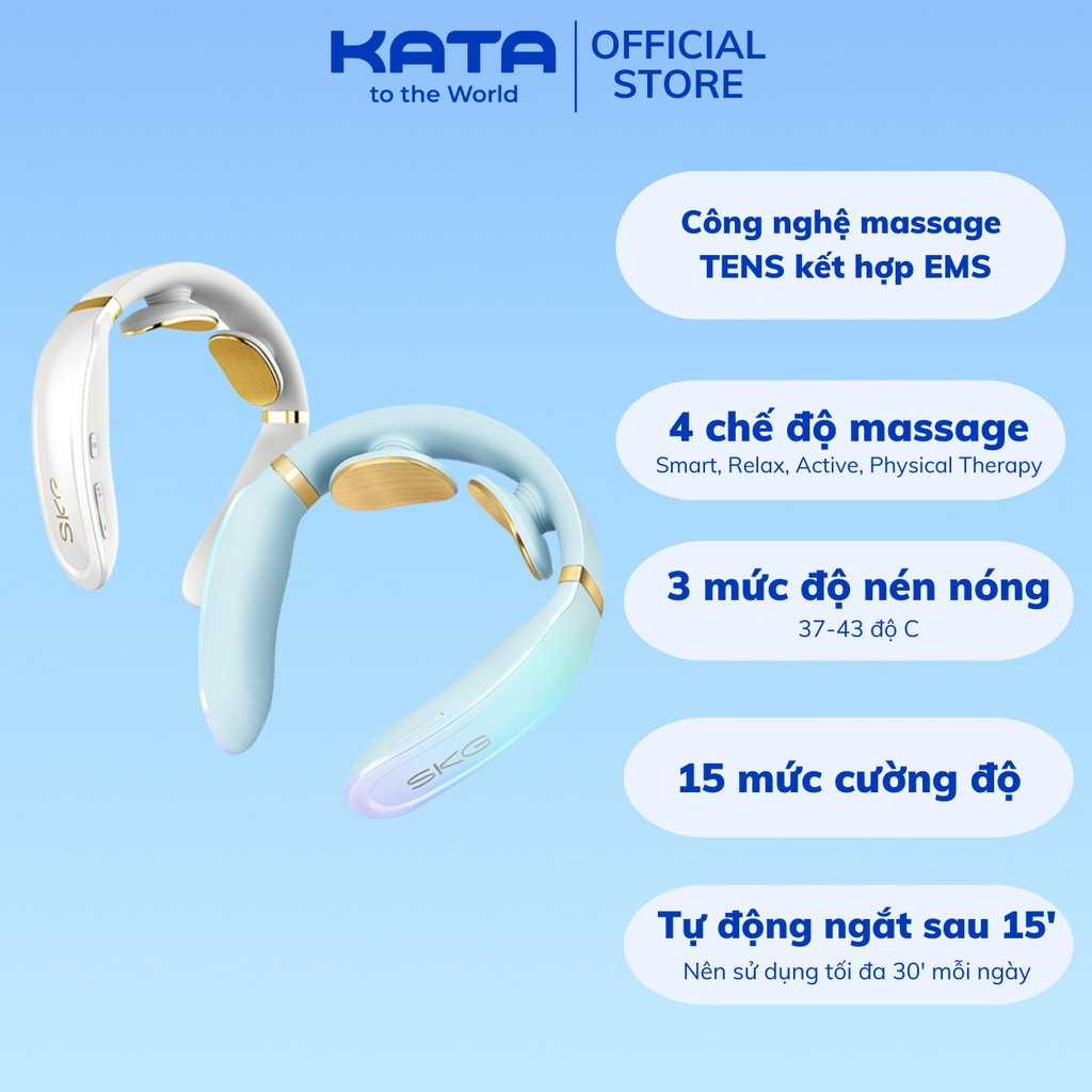 ** Thông số kỹ thuật Máy Massage Cổ SKG K6E với 4 chế độ Mát xa và 3 mức Chườm Nóng, giúp Giảm Đau Mỏi Cổ Vai Gáy, phù hợp với dân Văn Phòng