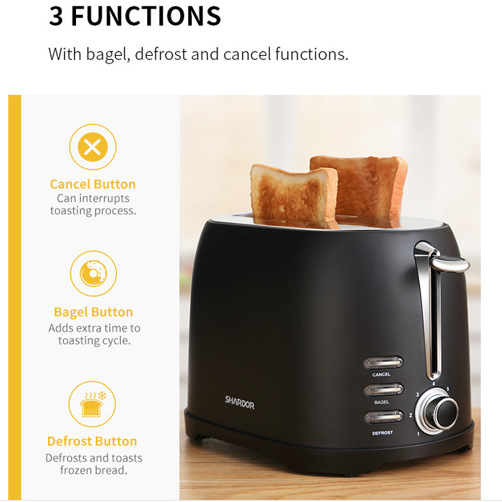 Máy nướng bánh mì Shardor TS515B-ELF công suất 800W trang bị 7 chế độ điều chỉnh tiện lợi Kiểu dáng hiện đại, sang trọng - Máy nướng bánh mì Shardor TS515B-ELF mang kiểu dáng hiện đại,