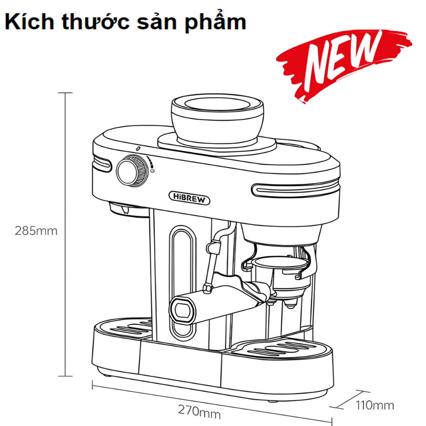 - Máy pha cà phê Espresso 3 trong 1 HiBREW H14 có công suất hoạt động là 1270W, áp suất 20 bar cho phép pha tối đa 20-25 ly/ngày. Nhờ đó đáp ứng được nhu cầu sử dụng tại các văn phòng, gia đì Hệ thống gia nhiệt tiên tiến NTC"