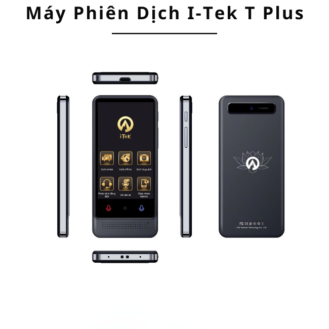 GIỚI THIỆU I-TEK T PLUS - Tên sản phẩm: i-Tek T Plus - Model: 2025 - Phần mềm: i-Tek Việt Nam - Công nghệ: Trí tuệ nhân tạo AI - Dịch Online: 145 ngôn ngữ - Dịch Offline: 32 ngôn ngữ - Thương hiệu: i-Tek Việt Nam CHỨC NĂNG CHÍNH 1. Dịch giao tiếp 2 chiều 145 ngôn ngữ 2. Dịch hội nhóm với nhiều điện thoại 3. Dịch hội thảo, hội họp 4. Dịch ghi âm xuất văn bản 5. Dịch chụp hình ảnh 6. Đổi ngoại tệ, đổi giờ, từ điển,.... THÔNG SỐ KỸ THUẬT - Kích thước: 130*63.3.13mm - Chất liệu:Vỏ kim loại viền hợp kim - Bộ vi xử lý: ARM intel 8 nhân 2.0GHz - Bộ nhớ trong: 16GB + thẻ nhớ (định dạng FAT32, hỗ trợ tối đa 512GB) - Dung lượng pin: 3200mAh (8h-22h) - Loại cổng sạc: Type-C - Màn hình: Led 6.5 - Camera: 8MP - Kết nối mạng: Hỗ trợ wifi 5.0/2.4GHz
