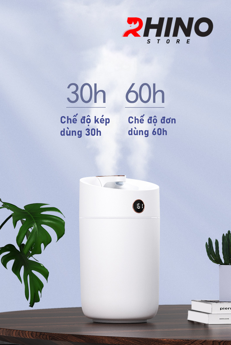 ✨Máy phun sương tạo ẩm cỡ lớn Rhino H801 3000ml, 2 lõi phun, tích hợp đèn 7 màu, dung tích lớn cho không gian rộng - Hàng chính hãng