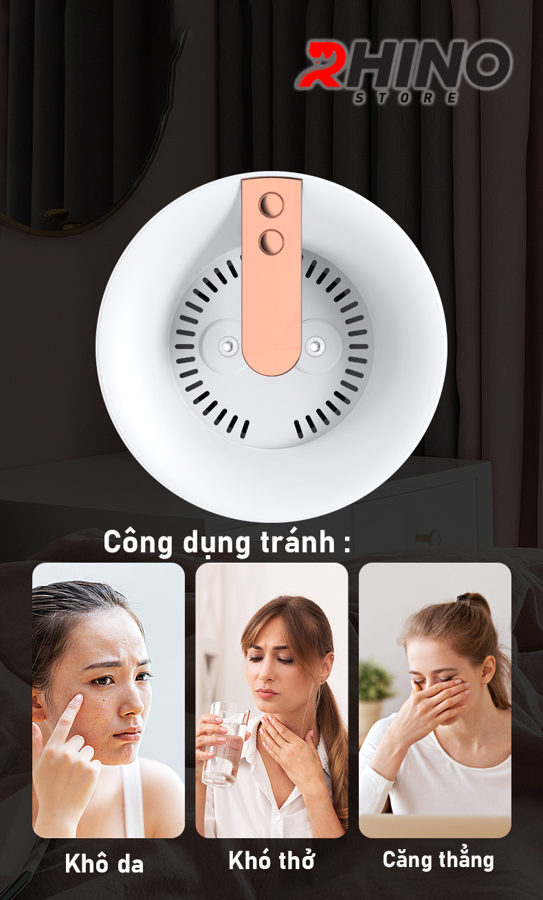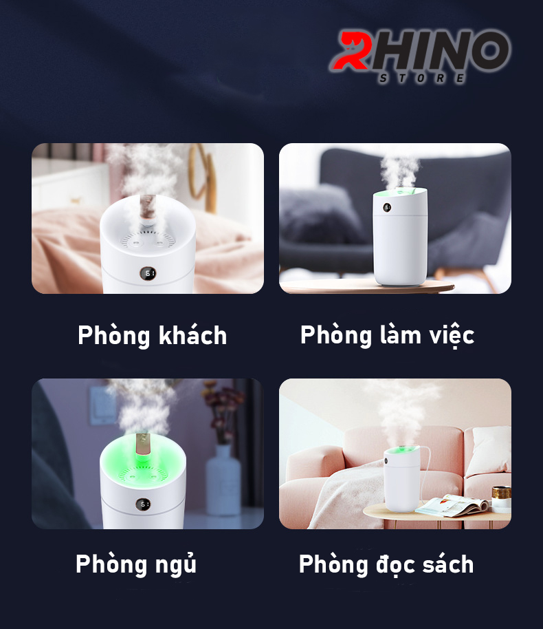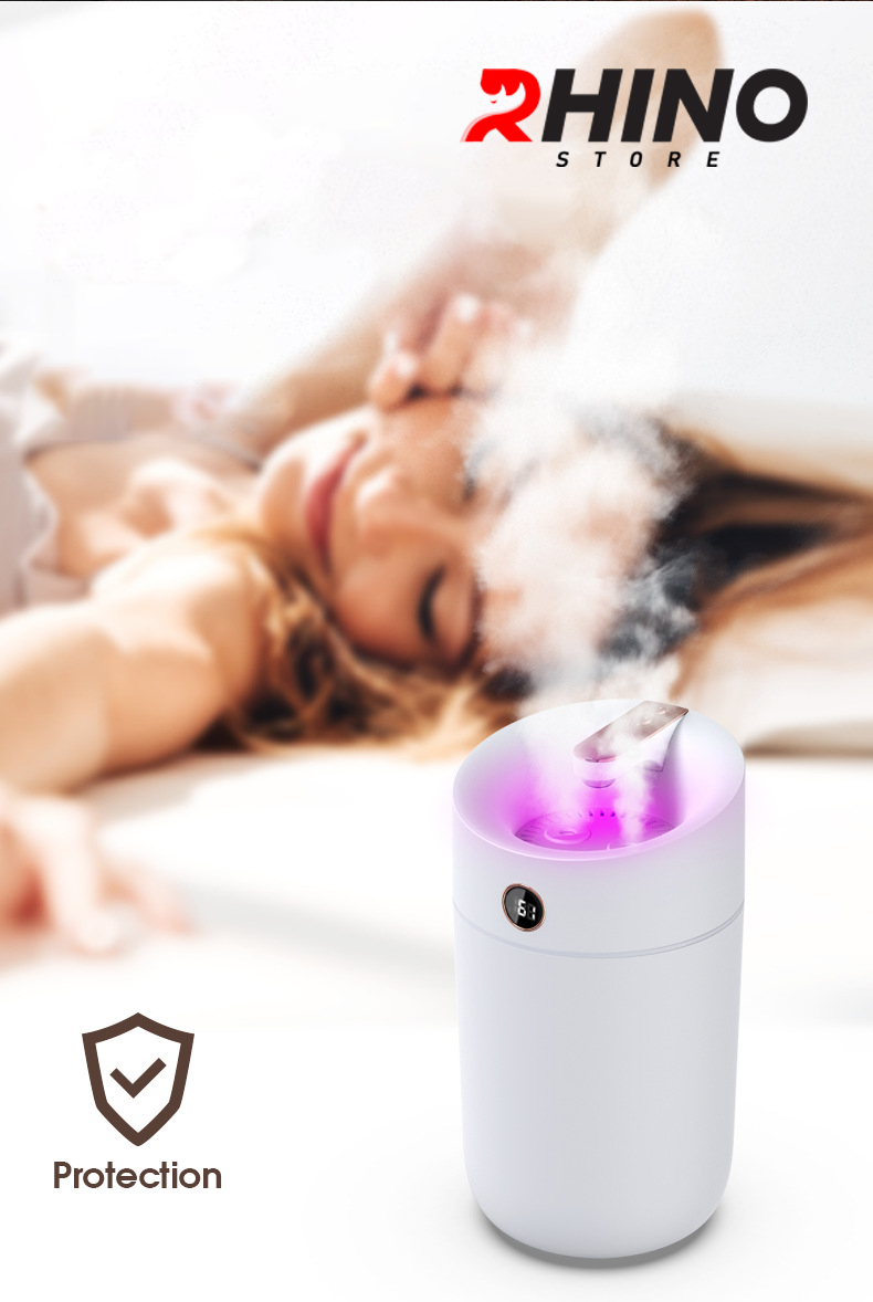 Mua tại TiktokMáy phun sương tạo ẩm hẹn giờ Rhino H801 3000ml, tích hợp đèn ngủ nhiều màu, tiện lợi, dung tích lớn cho không gian rộng Máy phun sương tạo ẩm là một thiết bị rất cần thiết đối với mọi gia đình trong thời tiết khô hanh, độ ẩm thấp với tác dụng chính là cấp thêm độ ẩm trong không khí. Từ đó giúp da không bị mất nước, khô nứt nẻ đặc biệt vùng môi và da mặt tạo ra môi trường sống thoải mái và dễ chịu nhất, không còn mặc cảm khi tiếp xúc với mọi người. Khi kết hợp với tinh dầu sẽ tạo ra bầu không khí dễ chịu, tránh nấm mốc và côn trùng ruồi muỗi (không nên lạm dụng và phải chọn đúng tinh dầu chất lượng tốt)