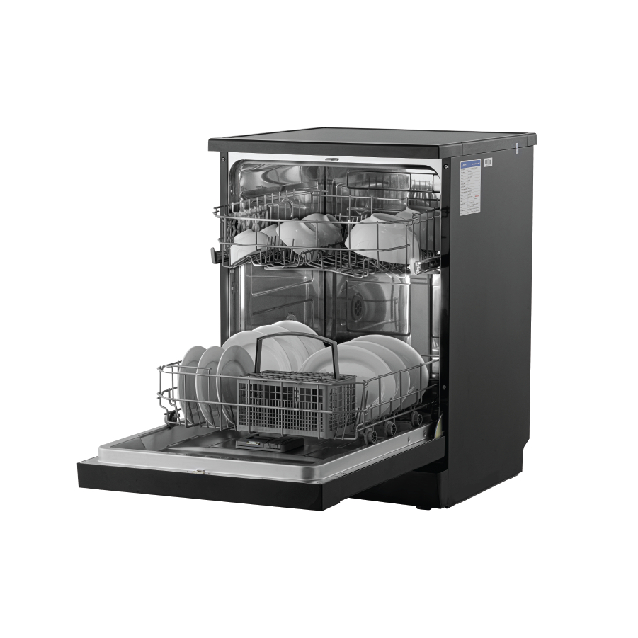 Máy rửa bát lắp đặt độc lập hoặc âm tủ Đặc tính sàn phẩm Dung tích 15 bộ bát đĩa Âu, Hệ thống điều khiển cảm ứng toàn diện 2 khay chứa cơ động +