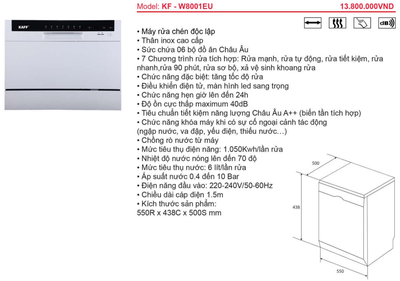Máy rửa bát KAFF KF-W8001EU ( Máy vừa, 6 bộ đồ ăn Châu Âu)