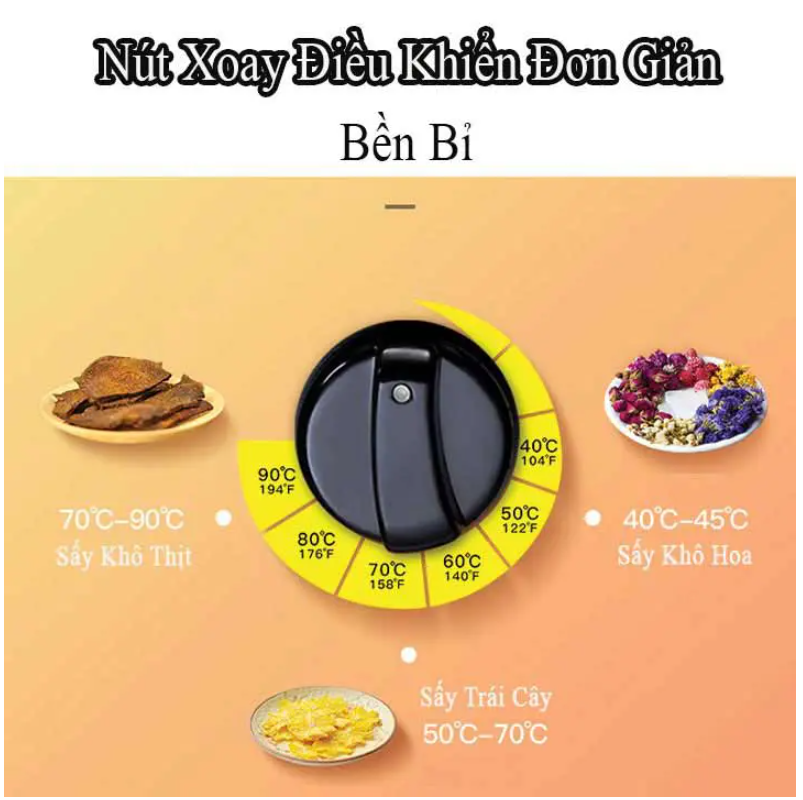 • Chính hệ thống gia nhiệt 360 độ thông minh này giúp thực phẩm được sấy chín đều, ngon và khô nhanh hơn từ 40 đến 50% so với dòng mày thường. Rút ngắn thời gian sấy và tiết kiệm điện năng tiêu thụ đáng kể. Đây chính là điểm khác biệt lớn so với các dòng máy thông thường.