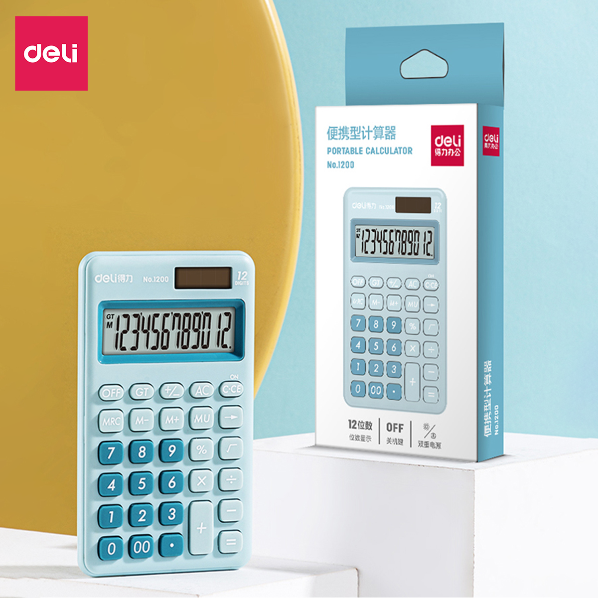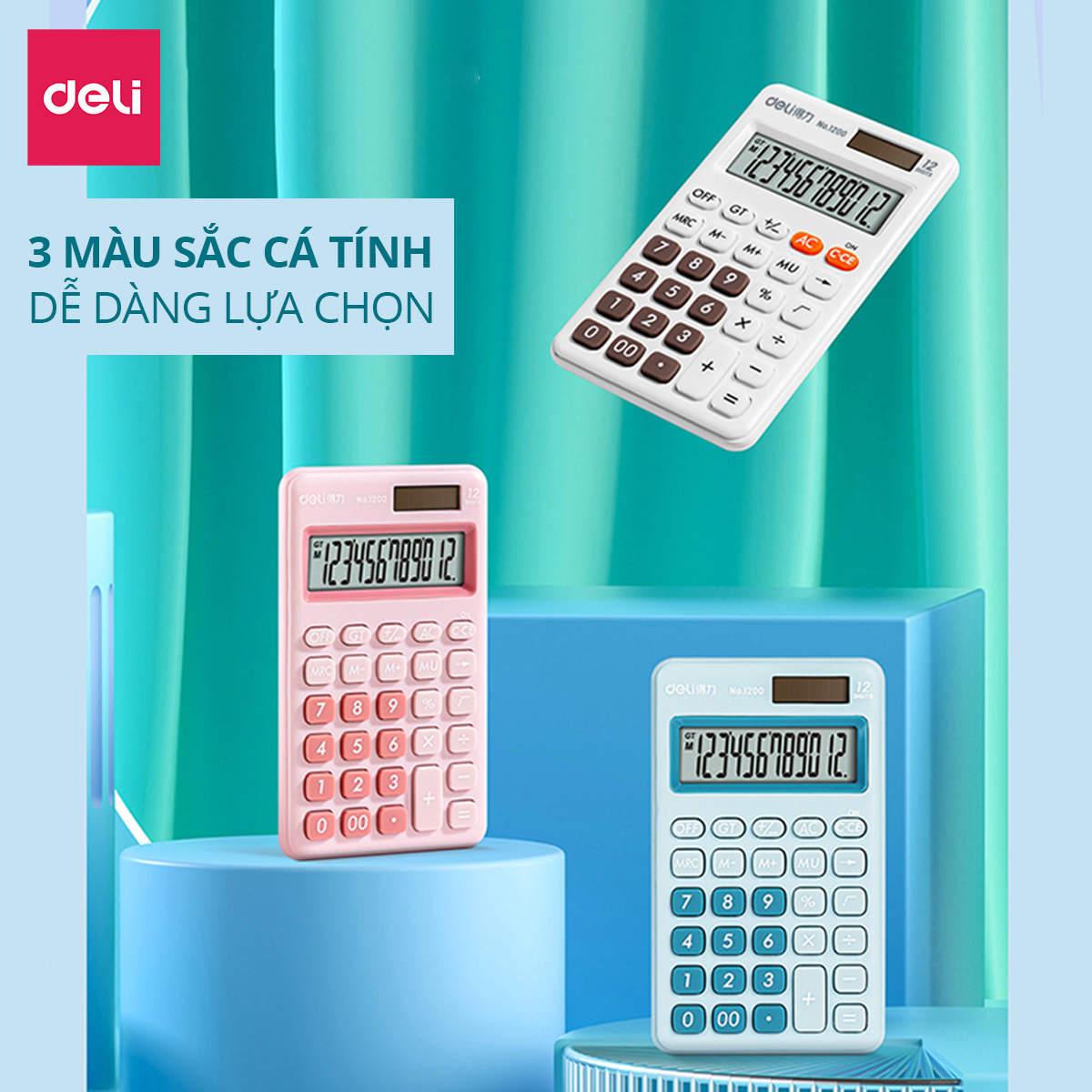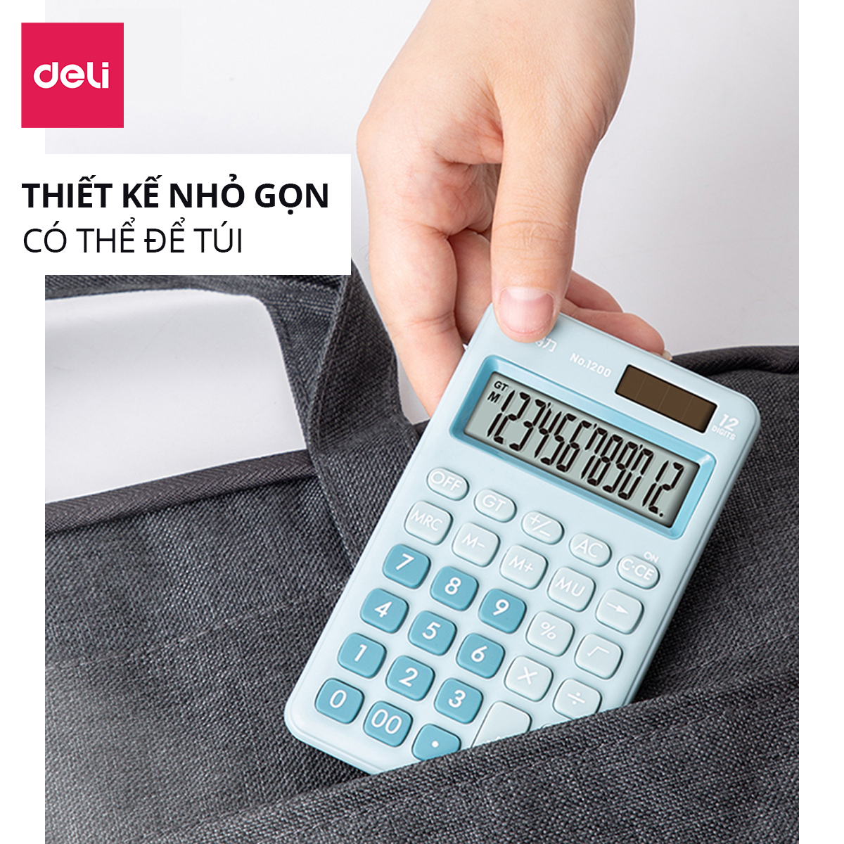 ✨Máy tính cầm tay bỏ túi 12 số để bàn Deli có thể dùng năng lượng mặt trời và pin - Phù hợp văn phòng và học sinh - Nhiều màu - 1200