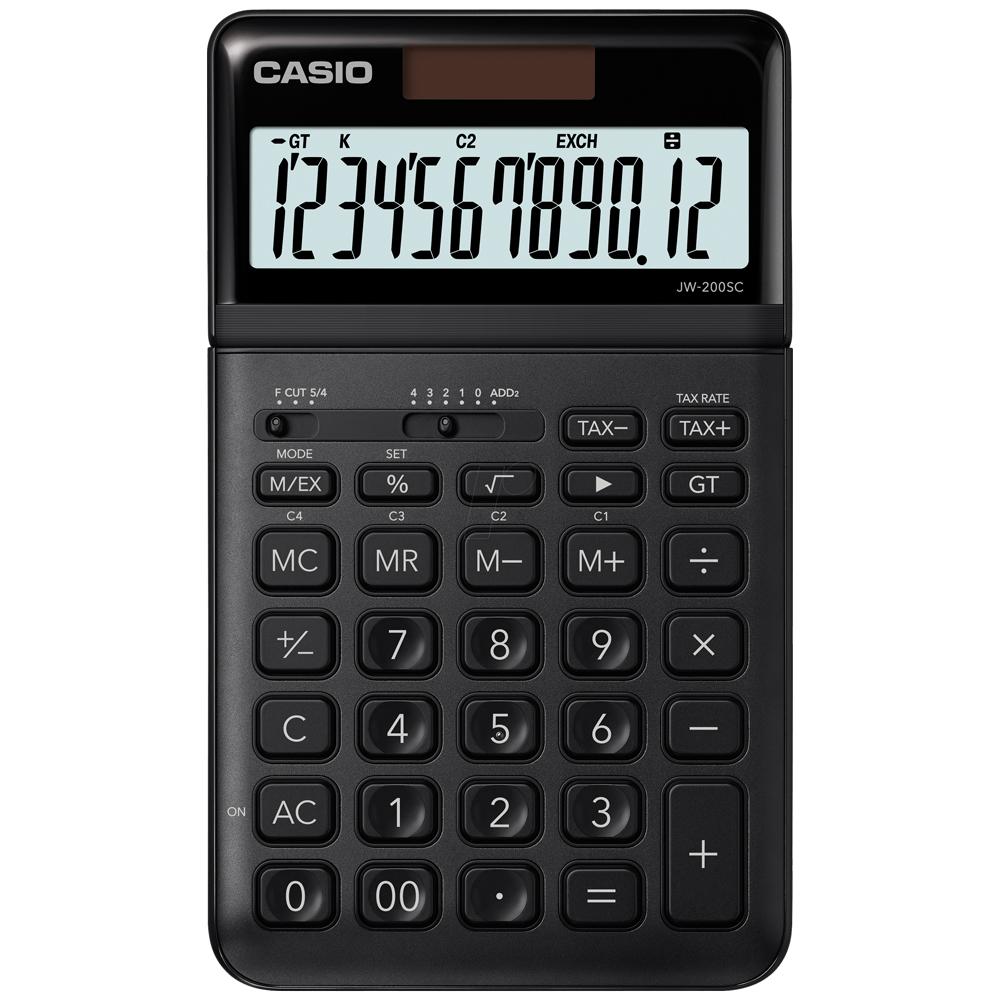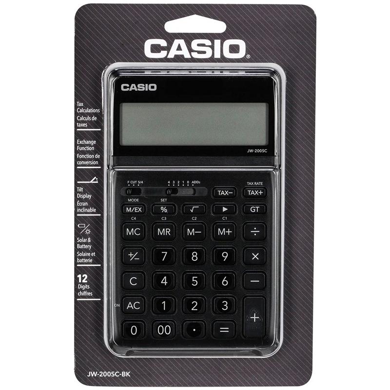 Máy Tính Casio JW200SC-BU Sản phẩm tự động tính toán giá cộng thuế, giá trừ thuế, khoản chiết khấu, giá bán, số tiền thuế, số tiền giảm giá và số tiền lãi. Nguồn hai