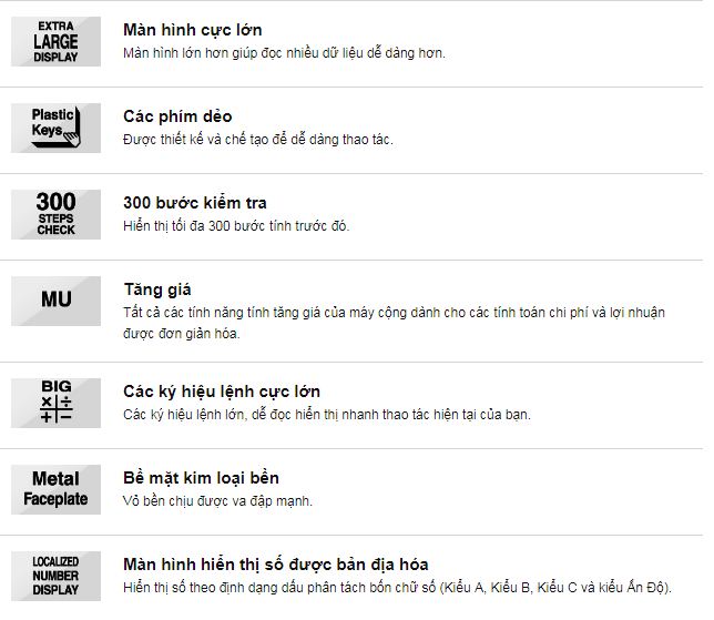Tất cả các tính năng tính tăng giá của máy cộng dành cho các tính toán chi phí và lợi nhuận được đơn giản hóa.