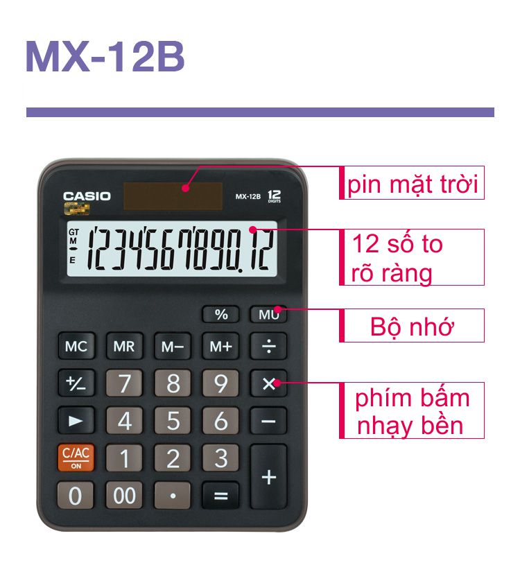 Máy Tính Để Bàn Casio MX-12S Máy Tính Để Bàn Casio MX-12S sẽ là công cụ tính toán hoàn hảo trong công việc hằng ngày của bạn. Máy được thiết kế cứng cáp, bền đẹp