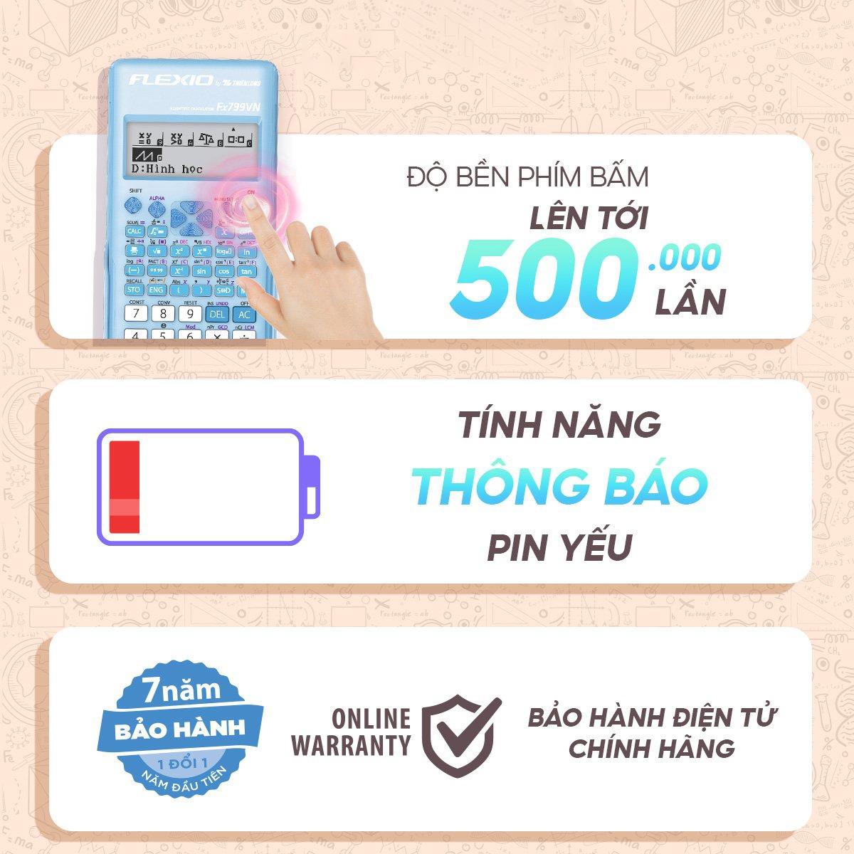 Máy Tính Kh Flexio Fx 799Vn Xanh Dương Máy tính khoa học Flexio là chiếc máy tính có nhiều tính năng nhất, lên tới 529 tính năng trong đó bổ sung 17 tính năng nổi