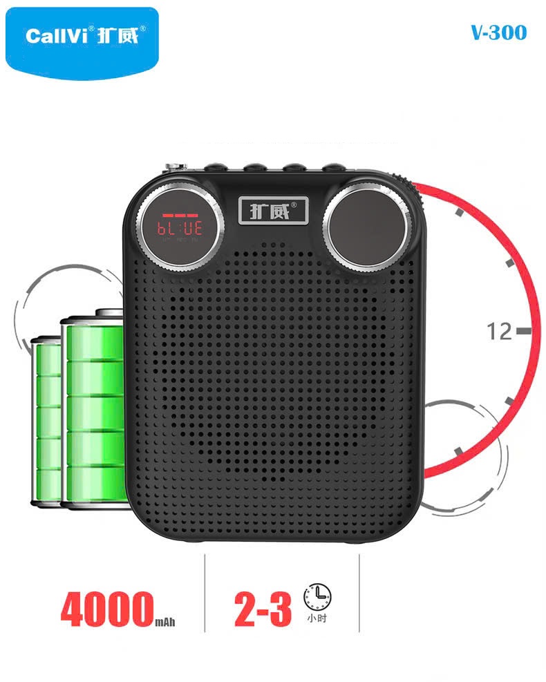 2.2 Thời gian sử dụng pin máy trợ giảng không dây Callvi V300 Máy trợ giảng Callvi V-300 có dung lượng 4000mAh. Thời gian loa khi dùng mic khoảng 30 giờ, khi phát nhạc là 20 giờ liên tục. đang là loại có thời lượng pin lâu nhất thị trường hiện nay.