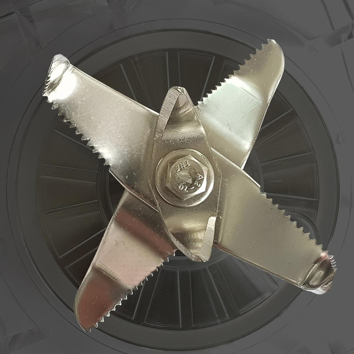 Bộ dao 6 lưỡi thép không gỉ chuyên dụng đa chức năng Phát triển theo hướng xay đa chức năng trong cùng một sản phẩm, máy xay sinh tố OSAKO OS-1500 sử dụng bộ dao gồm 6 lưỡi bao gồm: Lưỡi dao răng cưa, lưỡi dao sắc. Bộ lưỡi dao này có thể xay được tất cả các thực phẩm từ thịt cá, rau củ, các loại hạt ngủ cốc cứng cho đến sinh tố, đá lạnh mà không gặp phải bất kỳ vấn đề nào Lưỡi dao sử dụng chất liệu inox 304 chuyên dụng siêu cứng, rất khó bị mài mòn bởi thực phẩm, cho dù những vật cứng như chén sứ khi xay cũng không để lại vết sứt mẻ nào trên lưỡi dao