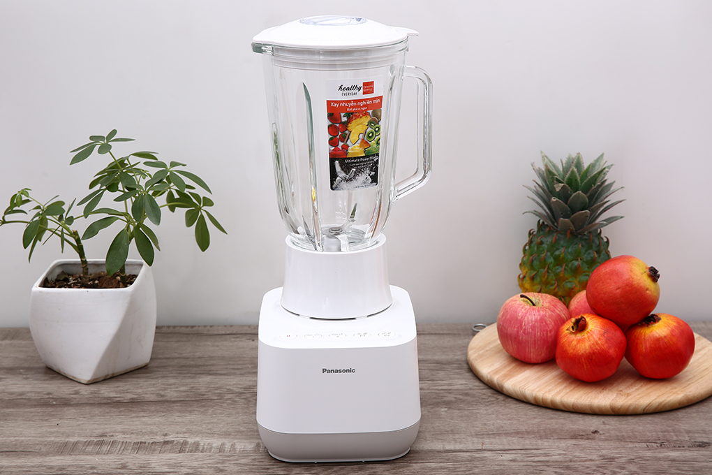 Máy xay sinh tố Panasonic thiết kế màu trắng sang trọng, công suất 700W, lưỡi dao sắc bén, cùng công nghệ đảo trộn V&M, cho bạn những ly sinh tố thơm ngon, bổ dưỡng hay chế