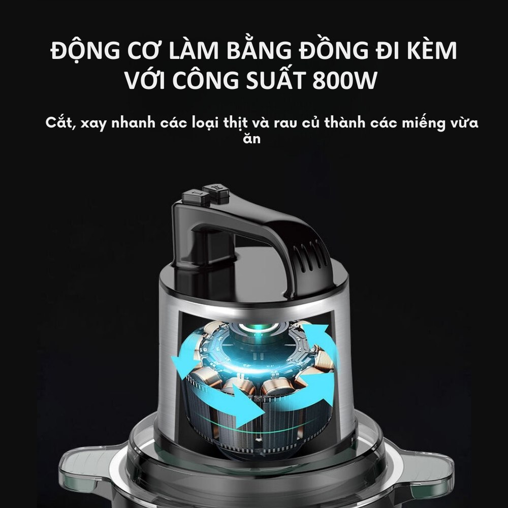 - Công suất mạnh mẽ 800W: Giúp xay nhuyễn mọi loại thực phẩm nhanh chóng và hiệu quả, kể cả thịt đông lạnh.