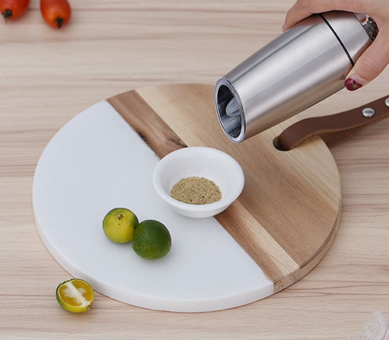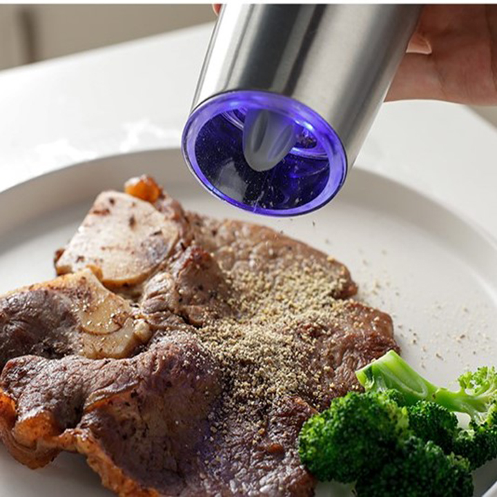 Máy xay tiêu tự động giúp tiết kiệm thời gian công sức, dễ dàng sử dụng chỉ cần đảo ngược máy xay, máy sẽ tự động xay tiêu, muối biển, gia vị đèn Led màu xanh sẽ được kích hoạt, rất hữu ích khi sử dụng trong môi trường tối, thao tác thuận tiện và dễ dàng chỉ bằng một tay
