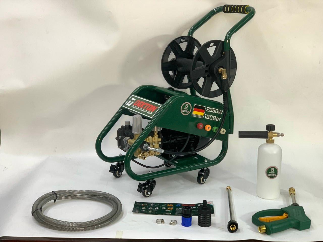 Thông số kỹ thuật -Thương hiệu DEKTON -Xuất xứ Trung Quốc -Model: DK-HPW2350PLUS -Điện áp 220-240V -Công suất 2350W -Tốc độ không tải 2800 rpm -Áp lực tối đa 30-130 bar -Lưu lượng nước 14L/p