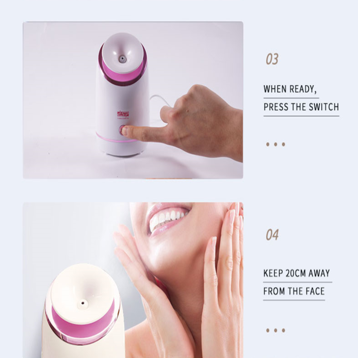 - Hơi nước mịn nhanh chóng đi sâu vào lỗ chân lông và thuận tiện loại bỏ bụi bẩn, tạm chất bên trong lỗ chân lông trên bề mặt da