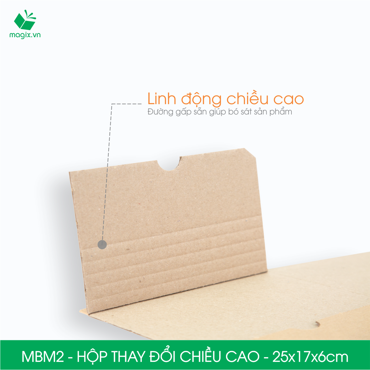 QUY CÁCH KỸ THUẬT Kích thước sản phẩm MBM1- 22x16x5 cm MBM2 - 25x17x6 cm MBM3 - 28x19x7 cm MBM4 - 32x22x8 cm MBM5 - 36x27x7 cm MBM6 - 41x32x7 cm Chất liệu: Carton sóng