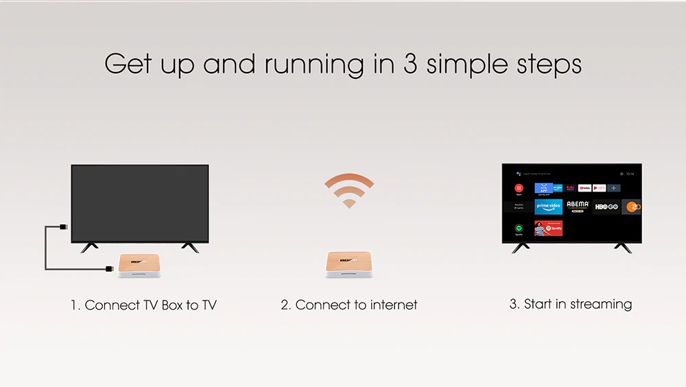 MECOOL KM6 ATV Deluxe Amlogic S905X4 4GB SDRAM 64GB ROM bluetooth 5.0 5G WiFi6 Android 10.0 TV Box Support Google Assistant 4K Youtube Prime Video AV1 GPU: Amlogic S905X4 Quad core ARM Cortex-A55 GPU: Mail-G31 MP2 SDRAM: 4GB FLASH: 64GB OS: Android 10.0 ATV Bluetooth: bluetooth 5.0 Ethernet: 10/100/1000 M Ethernet RJ45 LAN WiFi: IEEE 802.11 b/g/n/ac/ax (WiFi6) 2T2R 2.4G 5G Video decorder: AV1 4Kx2K@60fps, H.265 HEVC 4Kx2K@75fps, VP9 4Kx2K@60fps Support Google Assistant voice remote control Support 4K Youtube, 4K Prime Video, support 4K HDR10+   Specification:     Hardware Specifications CPU Amlogic S905X4Quad core ARM Cortex-A55 GPU Mail-G31 MP2 SDRAM 4GB FLASH 64GB WiFi Built in 2T2R 2.4G/5G WiFi SupportIEEE 802.11 b/g/n/ac/ax(WiFi6) Blutooth BT5.0 LAN Ethernet 10/100/1000 M Ethernet port LED Indicator the standby mode is red,the working mode is blue   Main Features OS Android 10.0 ATV Video decorder Hardware decoders -AV1 [email protected] up to 4Kx2K@60fps- VP9 Profile-2 up to 4Kx2K@60fps- H.265 HEVC [email protected] up to 4Kx2K@75fps- AVS2-P2 Profile up to 4Kx2K@60fps- H.264 AVC [email protected] up to 4Kx2K@30fps- MPEG-4 ASP@L5 up to 1080P@60fps (ISO-14496)- WMV/VC-1 SP/MP/AP up to 1080P@60fps- AVS-P16(AVS+) /AVS-P2 JiZhun Profile up to 1080P@60fps- MPEG-2 MP/HL up to 1080P@60fps (ISO-13818)- MPEG-1 MP/HL up to 1080P@60fps (ISO-11172)- RealVideo 8/9/10 up to 1080P@60fps Video encorder Video/Picture Encoding- Independent JPEG and H.264 encoder with configurable performance/bit-rate- JPEG image encoding- H.265/H.264 video encoding up to 1080P@60fps with low latency HDR Supports Dolby Vision (optional),HDR10+, HDR10, HLG and Technicolor HDR processing 3D Graphics Mail-G31 MP2 GPU- 4-wide warps, dual texture pipe, 2x 4-wide execution engines (EE)- Concurrent multi-core processing- for OpenGL ES 3.2, Vulkan 1.1 and for OpenCL 2.0 support Decoder format HD MPEG1/2/4, H.265/HEVC, HD AVC/VC-1, RM/RMVB, Xvid, RealVideo8/9/10 Media format Supports , .wmv, , , .dat, , , , , and .jpg file formats Music format Supports MP3, AAC, WMA, RM, FLAC, OGG and programmable with 7.1/5.1 down-mixing Photo format HD JPEG/BMP/GIF/PNG/TIFF Network Function Miracast, Airpla, Skype chatting, Picasa, Youtube, Flicker, Facebook, Online movies, etc. Language Chinese, English, Germany, Japanese, Korea etc. 24 languages OTA Support OTA update   Port Specifications Port 1 xHDTV 2.1 Dynamic HDR 4Kx2K@60 max resolution output   1 x USB 2.0   1 x USB 3.0   1 x TF CARD Support 1~32GB   1 x 3.5 Phone out CVBS&L/R output   1 x Optical   1 x RJ45 LAN   1 x DC 5V/2A   Accessories Package Included 1 x MECOOL KM6 4/64GB TV Box   1 x Power Adapter   1 x IR+BT Voice remote   1 x HDTV Cable   1 x User Manual Specification:   Hardware Specifications CPU Amlogic S905X4 Quad core ARM Cortex-A55 GPU Mail-G31 MP2 SDRAM 4GB FLASH 64GB WiFi Built in 2T2R 2.4G/5G  WiFi  Support IEEE 802.11 b/g/n/ac/ax(WiFi6) Blutooth BT5.0 LAN Ethernet 10/100/1000 M Ethernet port LED Indicator the standby mode is red,the working mode is blue Main Features OS Android 10.0 ATV Video decorder Hardware decoders     – AV1 [email protected] up to 4Kx2K@60fps  – VP9 Profile-2 up to 4Kx2K@60fps – H.265 HEVC [email protected] up to 4Kx2K@75fps – AVS2-P2 Profile up to 4Kx2K@60fps – H.264 AVC [email protected] up to 4Kx2K@30fps – MPEG-4 ASP@L5 up to 1080P@60fps (ISO-14496) – WMV/VC-1 SP/MP/AP up to 1080P@60fps – AVS-P16(AVS+) /AVS-P2 JiZhun Profile up to 1080P@60fps – MPEG-2 MP/HL up to 1080P@60fps (ISO-13818) – MPEG-1 MP/HL up to 1080P@60fps (ISO-11172) – RealVideo 8/9/10 up to 1080P@60fps Video encorder Video/Picture Encoding – Independent JPEG and H.264 encoder with configurable performance/bit-rate – JPEG image encoding – H.265/H.264 video encoding up to 1080P@60fps with low latency HDR Supports Dolby Vision (optional), HDR10+, HDR10, HLG and Technicolor HDR processing 3D Graphics Mail-G31 MP2 GPU  - 4-wide warps, dual texture pipe, 2x 4-wide execution engines (EE)  - Concurrent multi-core processing  - for OpenGL ES 3.2, Vulkan 1.1 and for OpenCL 2.0 support Decoder format HD MPEG1/2/4, H.265/HEVC, HD AVC/VC-1, RM/RMVB, Xvid, RealVideo8/9/10 Media format Supports , .wmv, , , .dat, , , , , and .jpg file formats Music format Supports MP3, AAC, WMA, RM, FLAC, OGG and programmable with 7.1/5.1 down-mixing Photo format HD JPEG/BMP/GIF/PNG/TIFF Network Function Miracast, Airpla, Skype chatting, Picasa, Youtube, Flicker, Facebook, Online movies, etc. Language Chinese, English, Germany, Japanese, Korea  etc.  24 languages OTA Support OTA update Port Specifications Port 1 x HDTV 2.1  Dynamic HDR 4Kx2K@60 max resolution output 1 x USB 2.0 1 x USB 3.0 1 x TF CARD Support 1~32GB 1 x 3.5 Phone out CVBS&L/R output 1 x Optical 1 x RJ45 LAN 1 x DC 5V/2A Accessories Package Included 1 x MECOOL KM6 4/64GB TV Box 1 x Power Adapter 1 x IR+BT Voice remote 1 x HDTV Cable 1 x User Manual