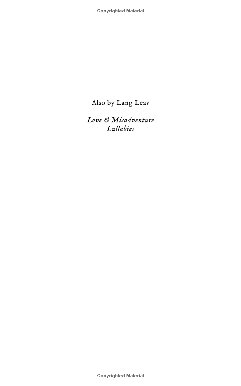 Best-selling poet Lang Leav presents a gorgeous hardcover gift book featuring the best of Lullabies and Love & Misadventure plus thirty-five new poems for fans to discover, along with original color illustrations by the author.