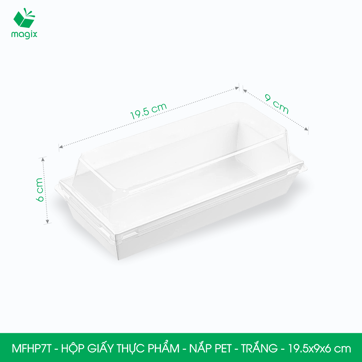 ✨MFHP7T - 19.5x9x6 cm - 25 hộp giấy nắp PET trắng đựng thực phẩm, thức ăn mang đi