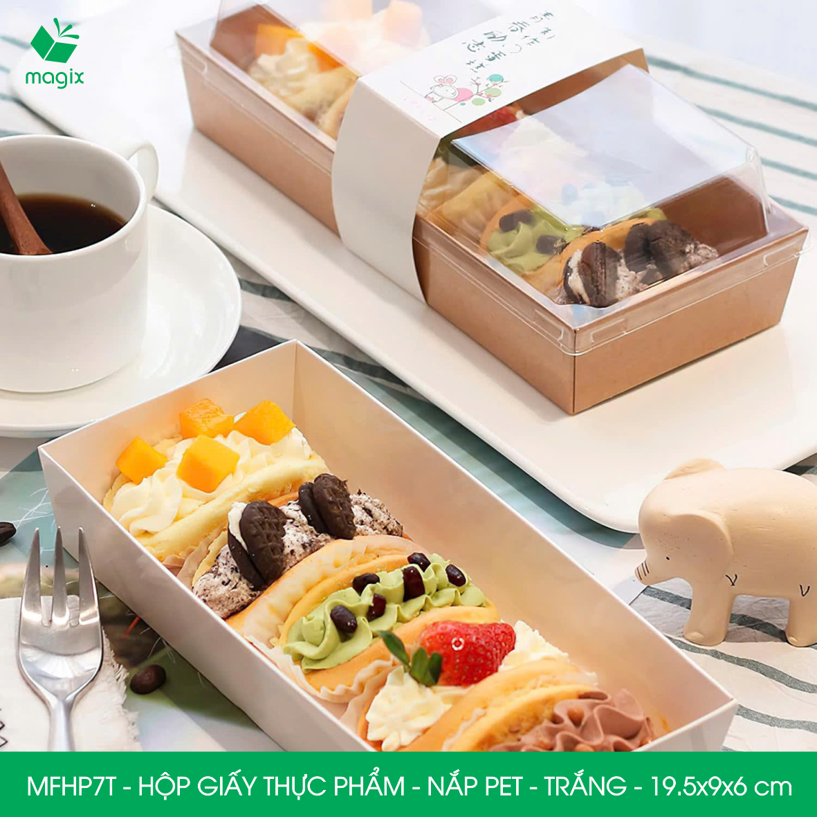 QUY CÁCH KỸ THUẬT Mã sản phẩm - Kích thước: • MFHP1N - Hộp giấy Kraft thực phẩm nắp Pet - Nâu - 10.5x10.5x6 cm • MFHP1T - Hộp giấy thực phẩm nắp Pet - Trắng - 10.5x10.5x6 cm • MFHP2N - Hộp giấy Kraft thực phẩm nắp Pet - Nâu - 15.5x8.5x6 cm • MFHP2T - Hộp giấy thực phẩm nắp Pet - Trắng - 15.5x8.5x6 cm • MFHP3N - Hộp giấy Kraft thực phẩm nắp Pet - Nâu - 20x12.5x6 cm • MFHP3T - Hộp giấy thực phẩm nắp Pet - Trắng - 20x12.5x6 cm • MFHP4N - Hộp giấy Kraft thực phẩm nắp Pet - Nâu - 20.5x15x6 cm • MFHP4T - Hộp giấy thực phẩm nắp Pet - Trắng - 20.5x15x6 cm • MFHP5N - Hộp giấy Kraft thực phẩm nắp Pet - Nâu - 12x12x6.5 cm • MFHP5T - Hộp giấy thực phẩm nắp Pet - Trắng - 12x12x6.5 cm • MFHP6N - Hộp giấy Kraft thực phẩm nắp Pet - Nâu - 14.5x13x6 cm • MFHP6T - Hộp giấy thực phẩm nắp Pet - Trắng - 14.5x13x6 cm • MFHP7N - Hộp giấy Kraft thực phẩm nắp Pet - Nâu - 19.5x9x6 cm • MFHP7T - Hộp giấy thực phẩm nắp Pet - Trắng - 19.5x9x6 cm
