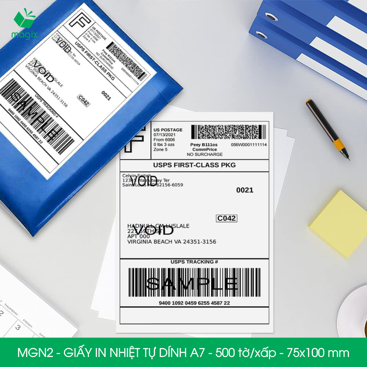 ✨MGN2 - 75x100 mm - Combo 2 xấp 500 tờ giấy in nhiệt A7 tự dính - Giấy in đơn hàng, giấy in A7