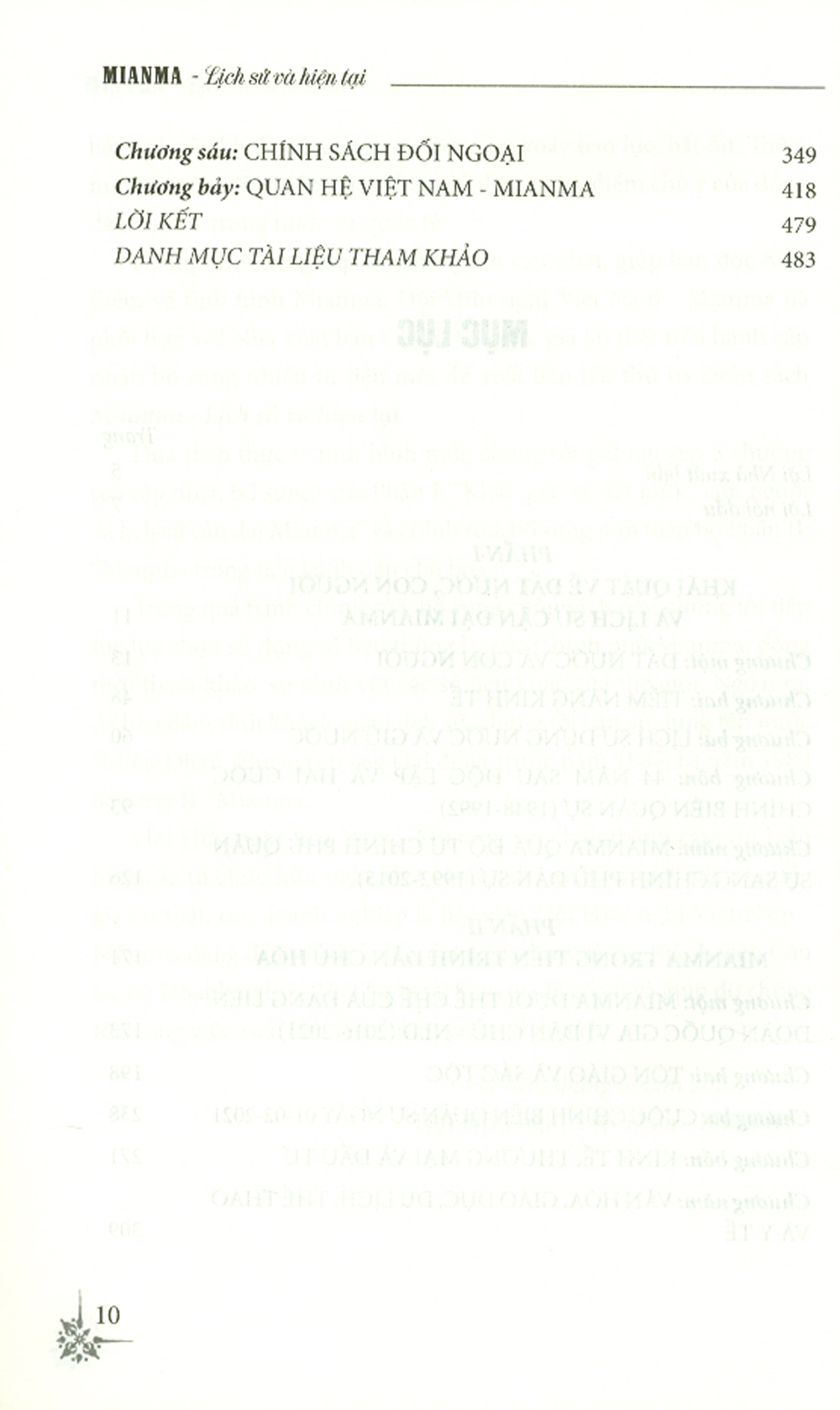 Tuy nhiên, thông tin khách quan và chính xác về lịch sử phát triển, đất nước, con người, chế độ chính trị, văn hóa, phong tục tập quán của đất nước Mianma vẫn là một ẩn số đối với nhiều người Việt Nam quan tâm đến quốc gia Đông Nam Á này. Nhằm giúp bạn đọc có điều kiện nghiên cứu và tìm hiểu sâu hơn về đất nước, con người Mianma, Nhà xuất bản Chính trị quốc gia - Sự thật xuất bản cuốn sách Mianma - Lịch sử và hiện đại do Đại sứ Chu Công Phùng chủ biên. Thông qua cuốn sách, bạn đọc sẽ hiểu biết sâu thêm về con người, lịch sử, chính trị, kinh tế, văn hóa, xã hội, những tiềm năng và thế mạnh của đất nước Mianma, mà trên thực tế có nhiều nét gần gũi, tương đồng với lịch sử, đất nước, con người Việt Nam chúng ta.
