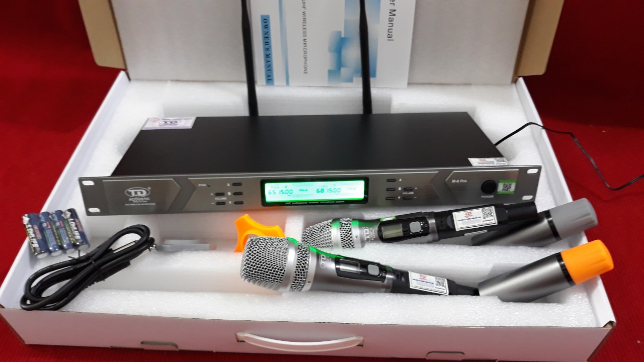 (HCM) Micro không dây TD Acoustic M8 Pro - Hàng Chính Hãng 2022   Âm thanh TD Acoustic chính hãng cam kết không bán hàng giả , nếu quý khách phát hiện hàng giả shop sẽ gửi lại tiền và tặng luôn sản phẩm quý khách đã mua. Xin cảm ơn quý khác hàng đã tin tưởng và ủng hộ Âm thanh TD Acoustic chính hãng ]  Micro không dây TD M8 Pro là model đầu tiên được TD sản xuất và giới thiệu tới người tiêu dùng, tiếp nối M8-Pro là các model M10- Plus, M12 và M18 có các mức giá cao hơn. với ưu điểm lớn nhất M8-Pro có mức giá cực kì hợp lý nhưng chất lượng đem lại vượt trội hơn tất cả các sản phẩm trong tầm giá. Sản phẩm chính hãng, chế độ bảo hành tốt, M8-Pro đã bán cháy hàng ngay ngày đầu mở bán. với thiết kế phổ thông mặt nhôm phay xước màu ghi hiện đại, phù hợp cho mọi không gian và dễ dàng phối ghép với các bộ dàn âm thanh.  M8-Pro sử dụng 2 râu thu phát sóng, là dòng mic chuyên dùng cho gia đình và các show