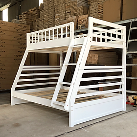 KÍCH THƯỚC: R 146 x D 205 x C 170 (cm) NỆM TẦNG TRÊN: 100 x 195 x 9+ (cm) NỆM TẦNG DƯỚI: 137 x 195 x 9+ (cm) MÀU SẮC: Trắng, Vàng, Nâu CHẤT