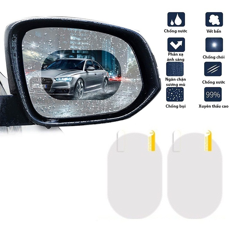 – Với miếng dán gương kính chống nước có thể dùng cho mọi loại xe ô tô hoặc xe máy.– Hiệu quả chống nước hoàn hảo, giúp bạn quan sát gương dưới trời mưa, đảm bảo tầm nhìn của người lái xe luôn rõ nét dưới mưa và ban đêm cả khi di chuyển ở tốc độ cao giúp bạn lái xe an toàn tuyệt đối.– Giúp chống bám nước kính chiếu hậu tuyệt đối, tăng cường độ sáng cho gương– Giúp chống nước giúp gương không bị làm mờ khi gặp trời mưa, tài xế dễ quan sát tránh được những rủi ro không đáng có xảy ra.– Giúp giảm thiểu ánh sáng chói lóa từ các phương tiện tham gia giao thông khác từ phía sau, tài xế tăng khả năng quan sát tốt hơn.