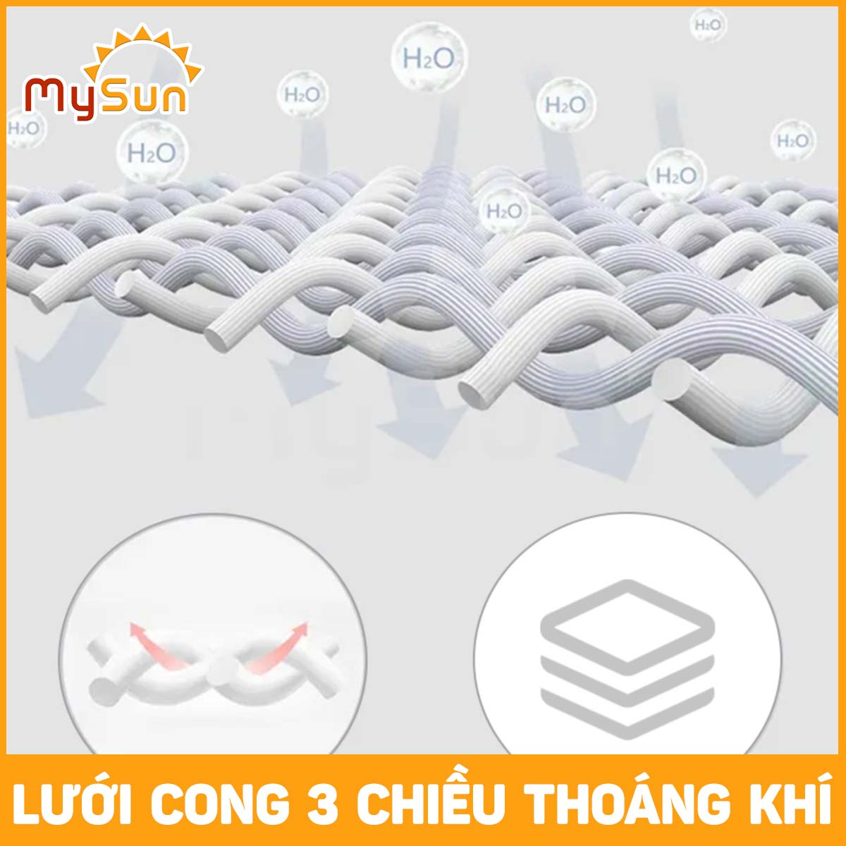 - Cấu tạo thảm khăn lót MySun 3 lớp: (1) bông cotton mềm mại, (2) TPU siêu thấm hút nước, (3) lông cừu chống trượt.