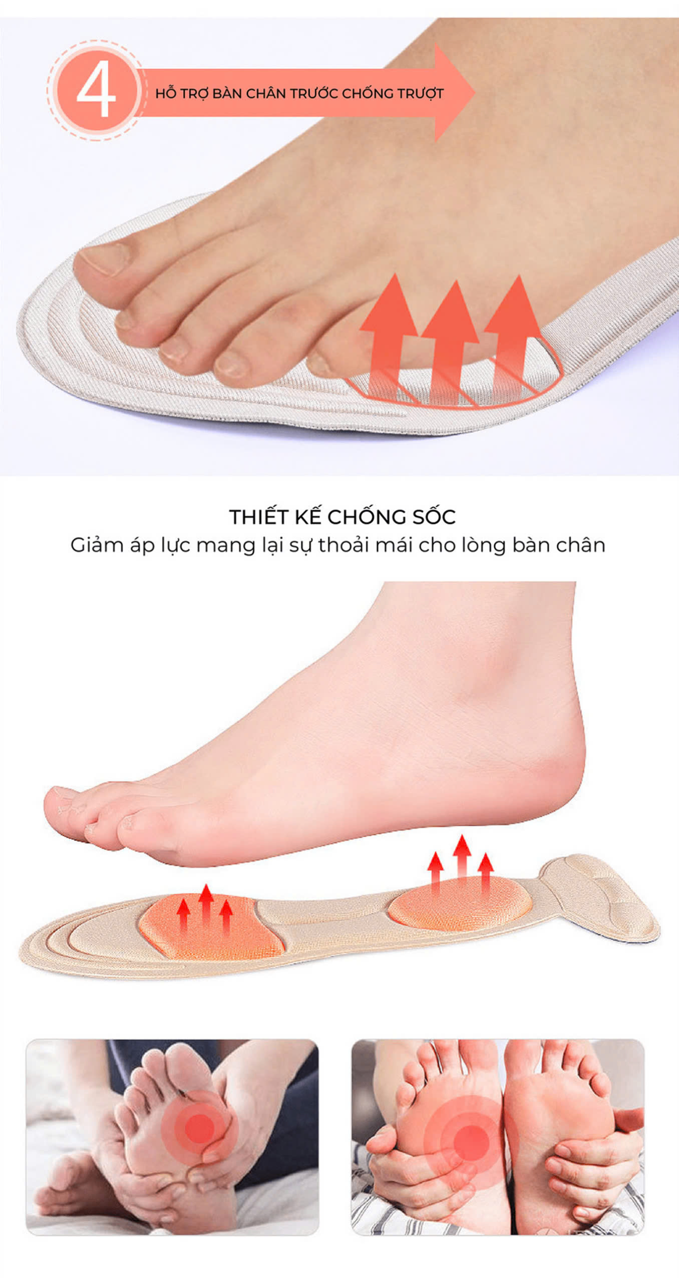- Chức năng: bảo vệ bàn chân, chống đau chân khi đi lại nhiều