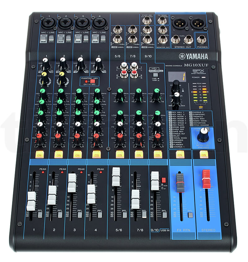 Mixer Yamaha MG10 XU là một trong những dòng mixer có thể sử dụng tốt tại những dàn âm thanh chuyên nghiệp phục vụ tại hội trường, phòng họp, sân khấu biểu diễn ngoài trời,
