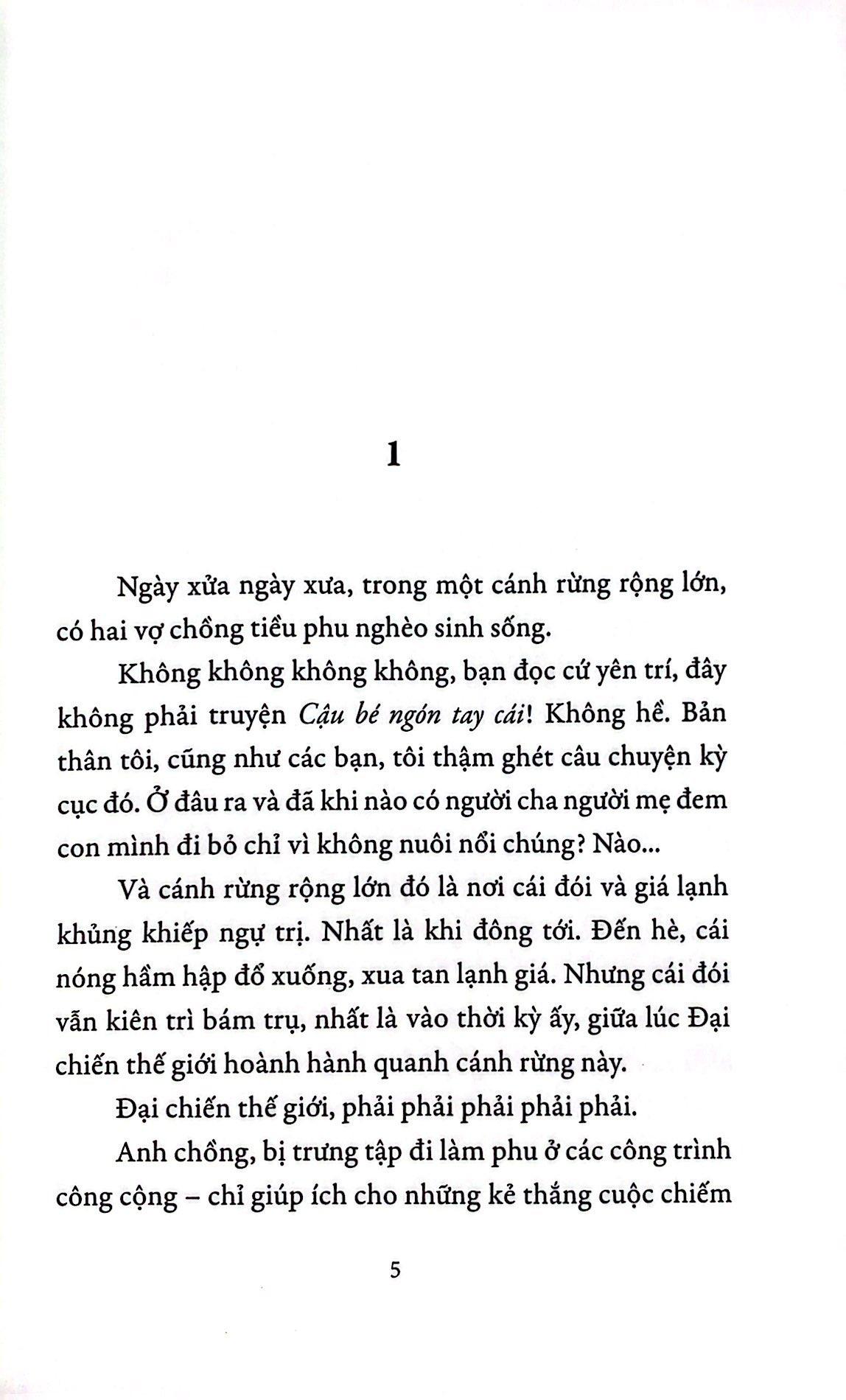 Tại một cánh rừng rậm rạp, nơi cái đói và giá lạnh khủng khiếp ngự trị, có hai vợ chồng tiều phu nghèo sinh sống. Tuổi tác càng lớn, bà tiều phu càng mong mỏi có một mụn con, là điều bà vẫn ngày ngày cầu xin thần linh chốn rừng già. Cũng tại nơi ấy, một tuyến đường độc đạo cắt qua chở theo chuyến “tàu hàng” mang đến niềm vui và sự mong chờ duy nhất cho cuộc sống đơn điệu của bà. Bỗng một ngày như bao ngày khác, chuyến tàu giấc mơ ban cho bà một “món hàng quý giá” – một đứa trẻ được bọc trong chiếc khăn san xa xỉ và đẹp nhất mà bà từng thấy.
