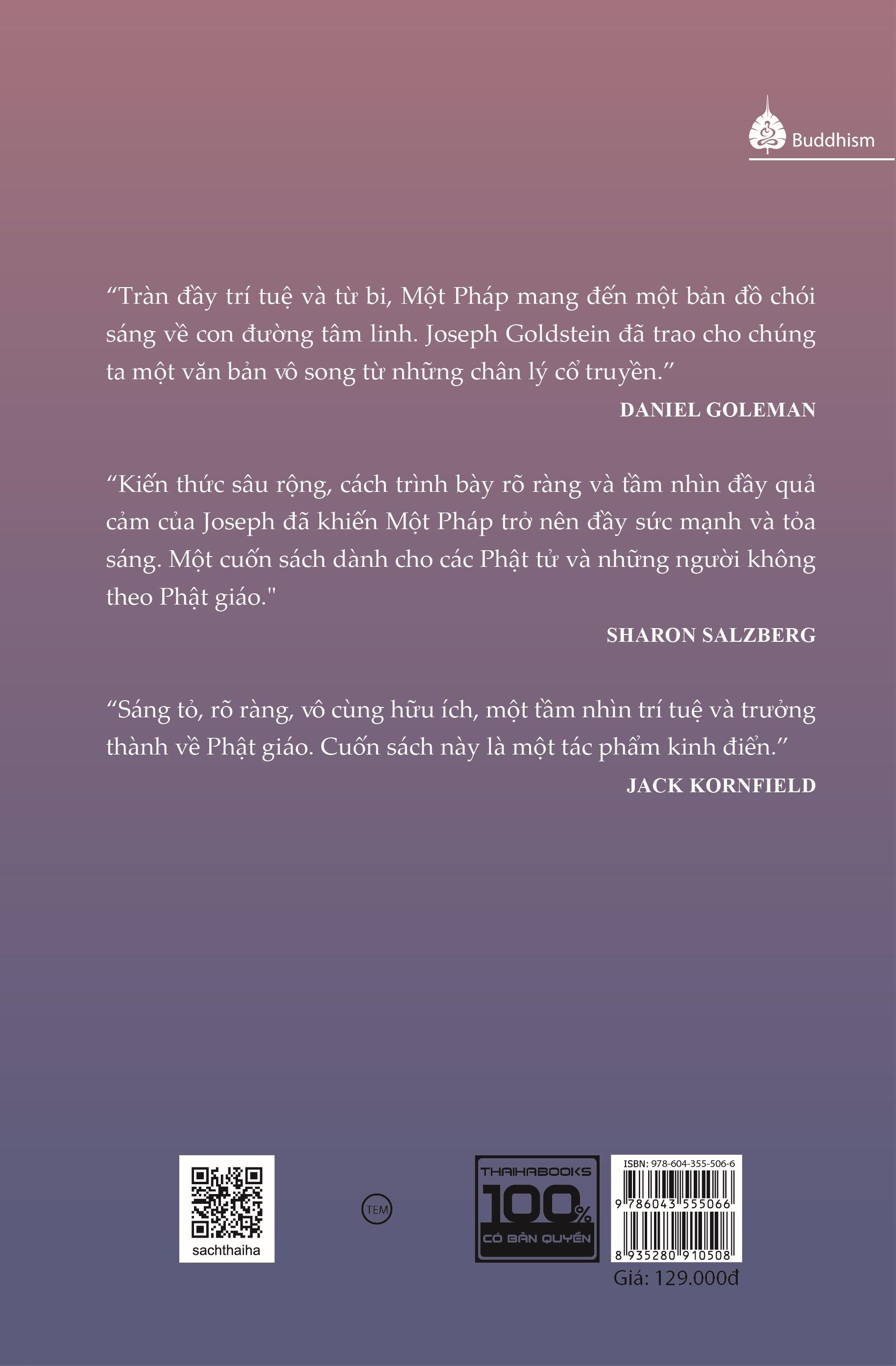 Joseph Goldstein là một Phật tử, giáo thọ trong phần lớn cuộc đời trưởng thành của mình và là một thành viên sáng lập của Hiệp hội Thiền Minh Quán (Insight Meditation Society). Ông là ví dụ cho một kiểu Phật tử mới mà chúng ta thấy ở phương Tây ngày nay. Thay vì bám chặt vào một truyền thống duy nhất, ông đã học với rất nhiều vị thầy, kết nối các phương diện khác nhau của nhiều truyền thống Phật giáo vào sự thực hành của mình. Đã có nhiều tiền lệ trong lịch sử cho cách tiếp cận như vậy. “Chứa đầy trí tuệ và lòng từ bi, Một Pháp cung cấp một bản đồ rực rỡ về con đường tâm linh.” (Daniel Goleman, tác giả của Trí tuệ cảm xúc).