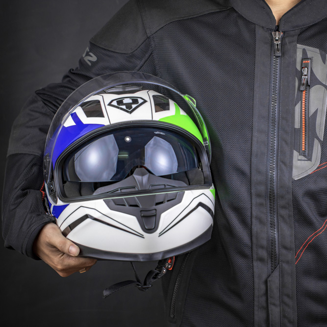 Mũ gồm kính trong chắn ở phía ngoài và có thể nâng cấp thêm kính màu tối, giảm cường độ sáng ở phía trong. Giúp dịu mắt khi đi trong điều kiện ánh nắng gắt. Kính chắn ngoài giúp chống côn trùng khi di chuyển ban đêm.