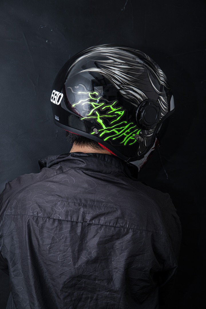 Mũ fullface EGO E-5 phiên bản 2023 vẫn giữ nguyên form nón tròn, ít góc cạnh. Điều khác biệt ấn tượng nhất của phiên bản này chính là series tem mũ độc đáo, gây ấn tượng ngay từ cái nhìn đầu tiên.