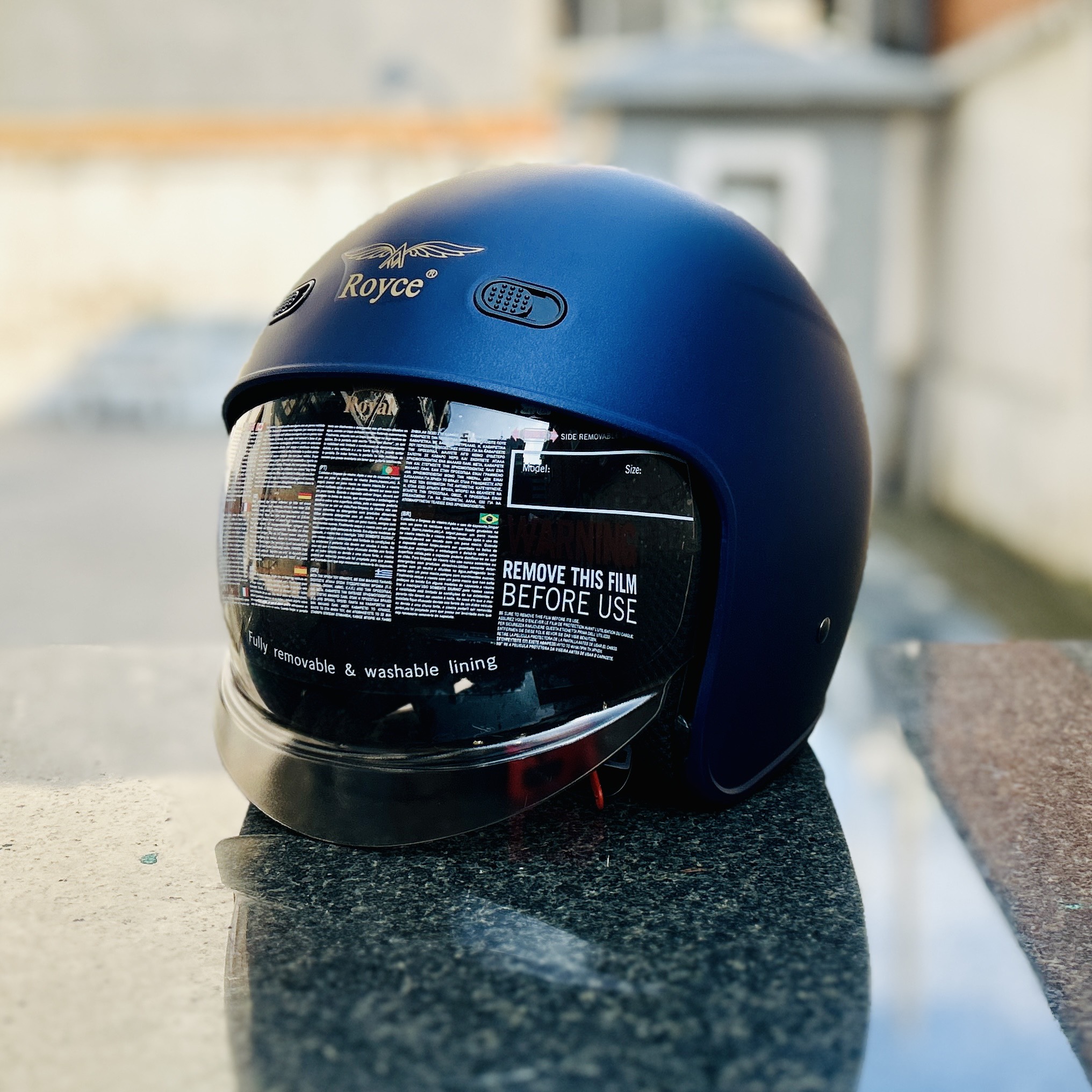 Thông tin chi tiết: Thương hiệu: Royal (Mafa VN sản xuất) Model: M139 Luxury Loại: 3/4 đầu, có kính âm giảm UV Kính: Kính âm nhỏ màu trà khói, chống tia UV, bụi, gió. Mái