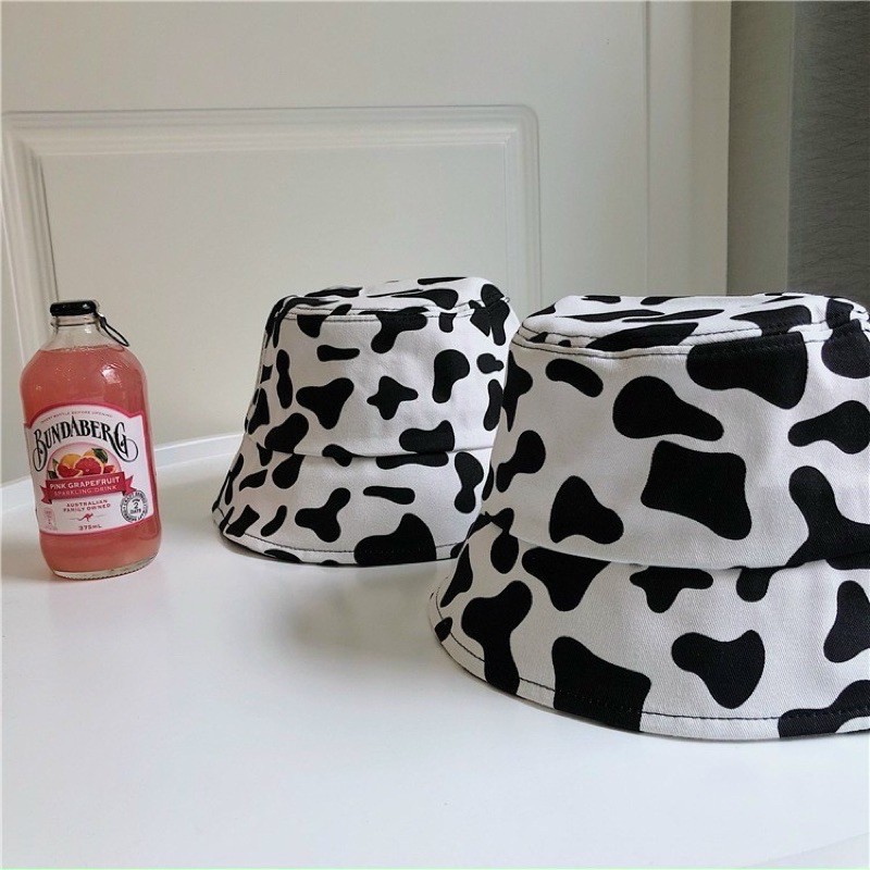 Mũ vành 2 mặt, bucket hat họa tiết bò sữa dễ thương