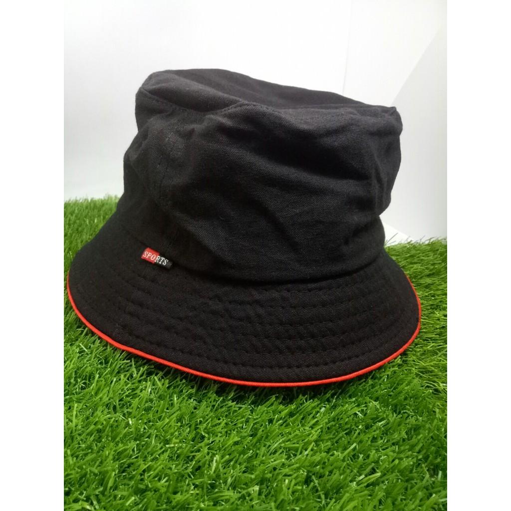 ✨MŨ BUCKET NÓN TAI BÈO ĐEN VIỀN ĐỎ TRƠN